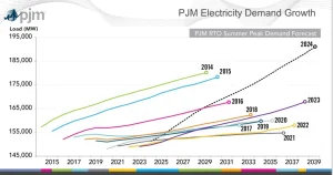 Six sessions on the Summer NARUC Policy Summit agenda discussed load growth, including two of the three general sessions. This topic emerges as urgent in part due to recent electricity forecasts that anticipate 5-6% annual demand growth after a decade of flat growth. PJM’s recent demand growth update shows the dramatic change anticipated this year alone: