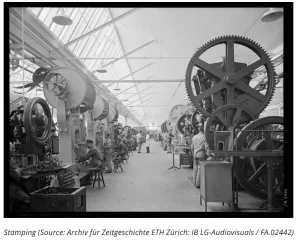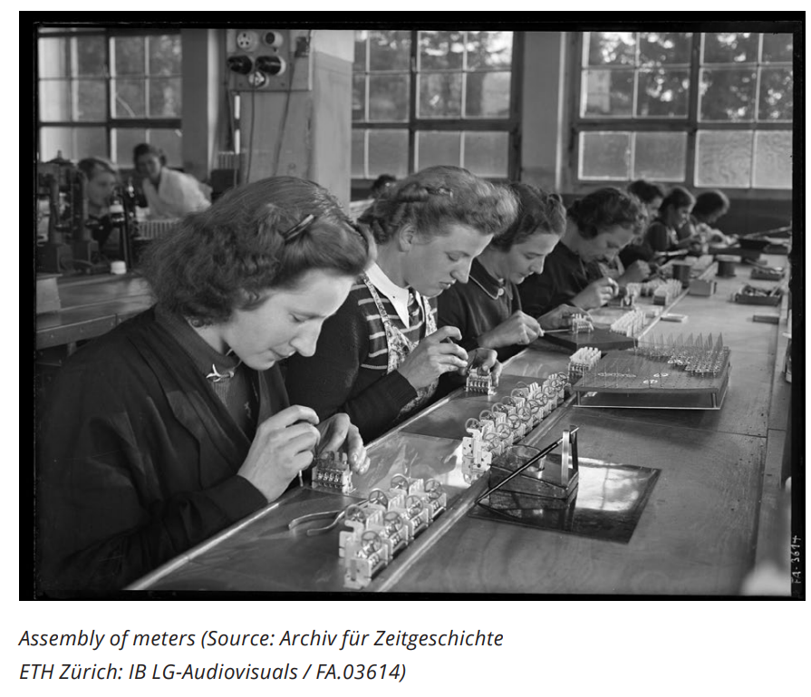 The beginning of World War I in August 1914 set about significant change in Landis & Gyr’s operations. When factory production was temporarily shut down to mobilize staff for the factory army, the company faced an unpredictable financial future. However, the economic uncertainty did not endure. Despite challenges to purchase raw materials and semi-finished products, Landis & Gyr and the Swiss metal and machine industry in general experienced an economic boost. During this time, the company cared for its employees by establishing a welfare foundation and a compulsory company health insurance fund. Additionally, the foundation included a fund for meal compensation, nursing, a kindergarten, and food distribution.
