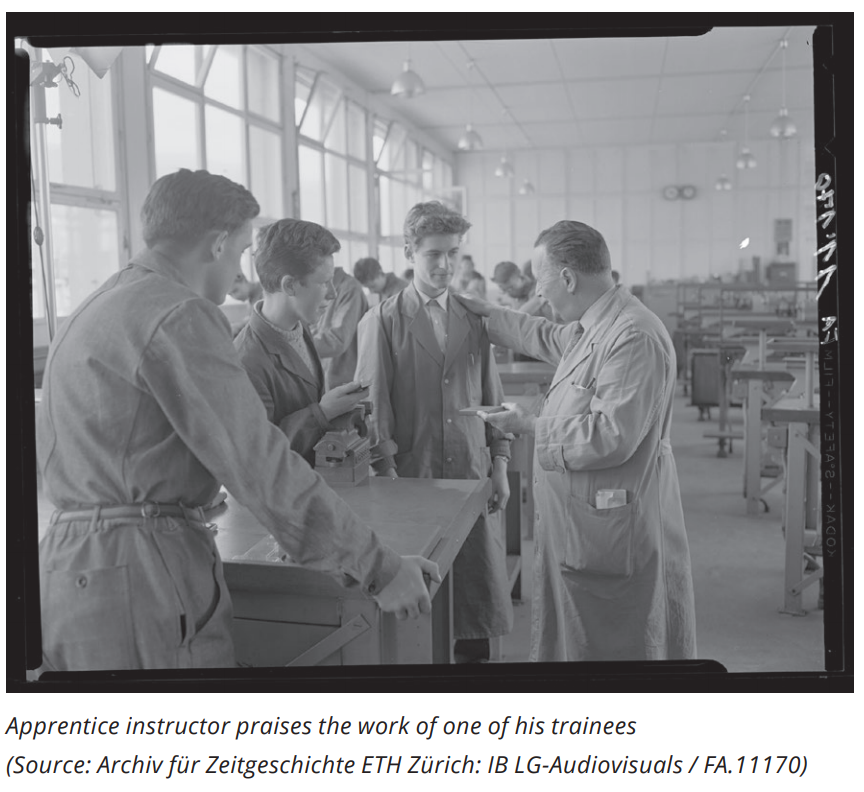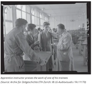 In 1940, K. H. Gyr established a heat engineering department, focused on the production of heat pumps, which later would become another important business division of Landis & Gyr. In the following years, K. H. Gyr led the company through the difficult period of the Second World War with dedication and prudence. To avoid a food shortage during the war, the company supported employee volunteer work such as potato cultivation, which helped to raise Switzerland’s self-sufficiency in food production from 52% to 70%.